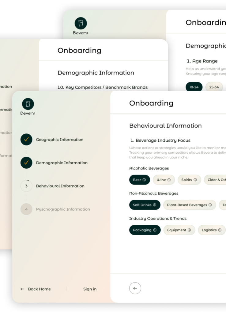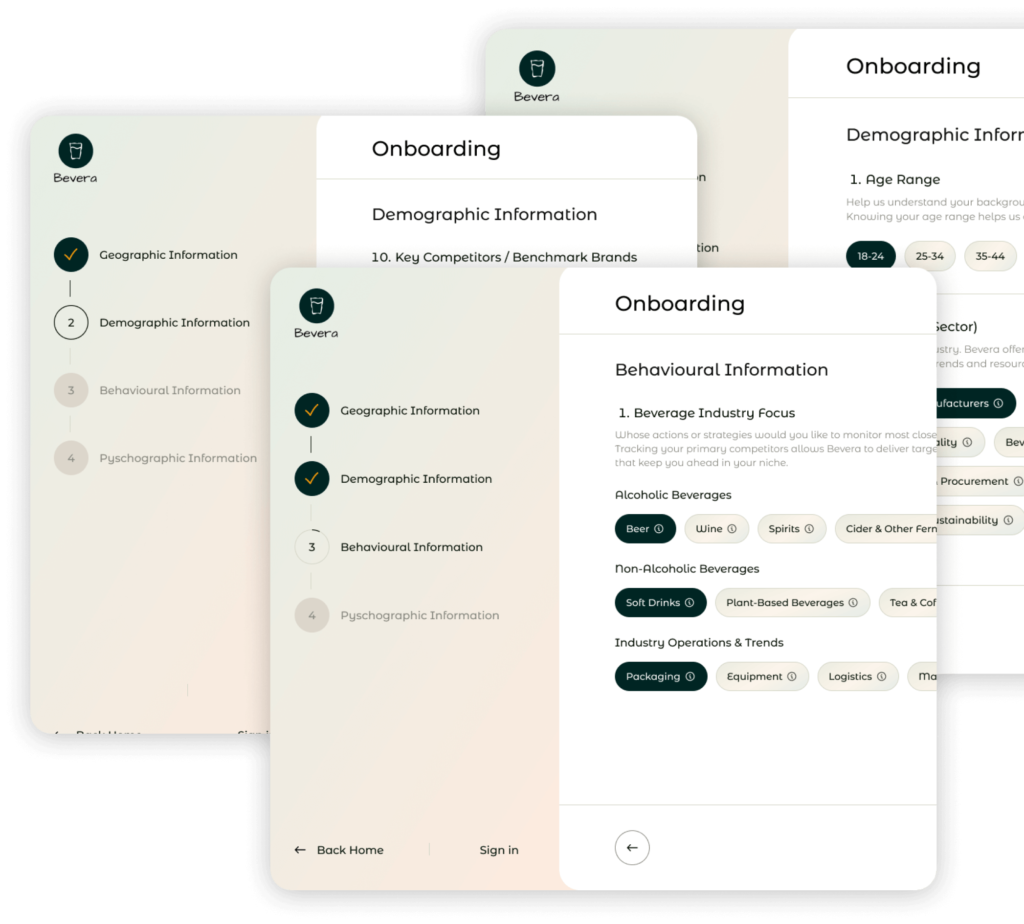 At Bevera, we understand that every professional in the beverage industry faces unique challenges. Our onboarding process is designed to equip our AI-native platform with the right information & context, ensuring that every insight and recommendation is perfectly aligned with your goals.